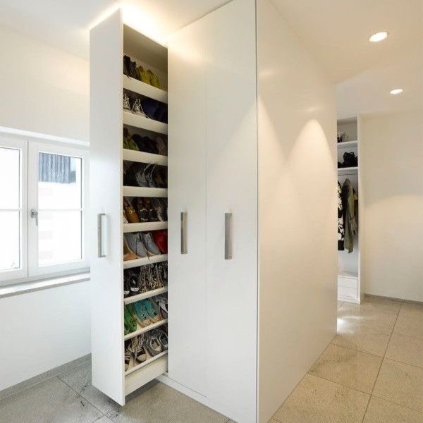Большой выбор шкафов и полок, предоставят Вам возможность выполнить удобную планировку в гардеробе и по выбранным категориям распределить вещи.